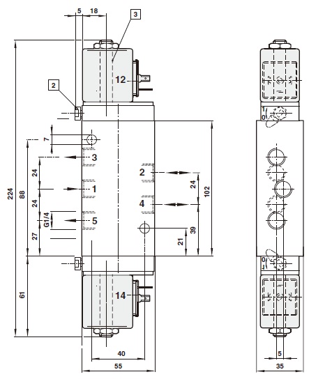Description:5/2 way, single solenoid coil5/2 way, Double solenoid coils