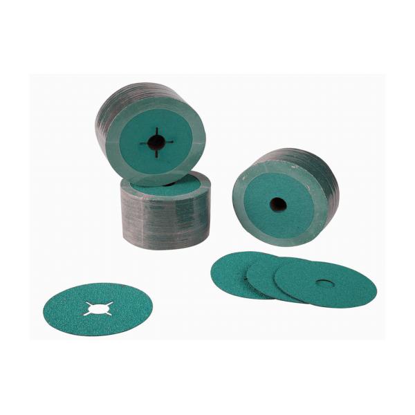 WEEM 3216-01 4 1/2” x 7/8” (115mm x 22mm) fiber discs are Zirconia Aluminum resin fiber grinding discs. Zirconia resin fiber grinding discs are designed for use on stainless steel and other hard to grind metals. Self-sharping zirconia aluminum grain coated on heavy fiber backing. Very sharp durable grain for rapid stock removal and long life, Discs have 7/8” center hole for use on electric or air right angle disc sanders..