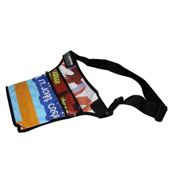 | Material: | water proof plastic fabric with nylon waist tape belt size: L 102cm* W 4cm with plastic buckle, 4c 1 side printing, 2 zipper bag | |