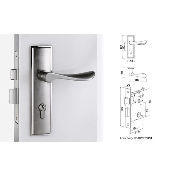 Satin Nickel Mortise Door Lock / Room Door Mortise Latch Lock Zinc Alloy