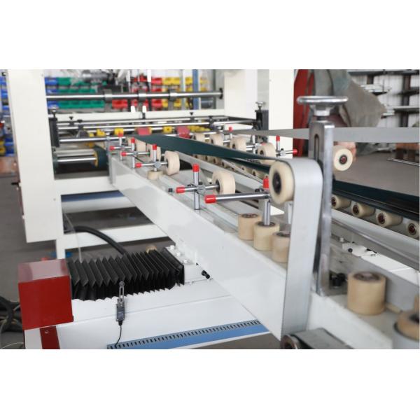 AFG Series automatic folder gluer machine consist of three sections : vacuum feeding section , glue and folding section ,counter and stacker section , frequency conversion motor with quality inverter adjust speed ,PLC&TOUCH screen control system for easy operation and running stable ,average speed 150 sheets/min ,Energy conservation and high speed ,saving labor cost