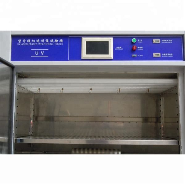 The damage products caused by sunlight and moisture to material is hardly estimated, and UV accelerated weathering test machine can simulate the sunlight, rainwater and dew, by which use the machine to estimate the damage to the material. The test principle in the machine is putting the tested material exposing under the controlled simulating sunlight and the humid condition alternately, at the same time, the temperature can be controlled and set for a testing condition, which simulates the natural environment but can accelerate the process to shorten the testing time by strengthening the UV light, adding the humidity and rising the temperature. The equipment adopts UV Fluorescent lamp to simulate the sunlight, and use the condensation and spray to simulate the humid factor and the outdoor environmental condition.
