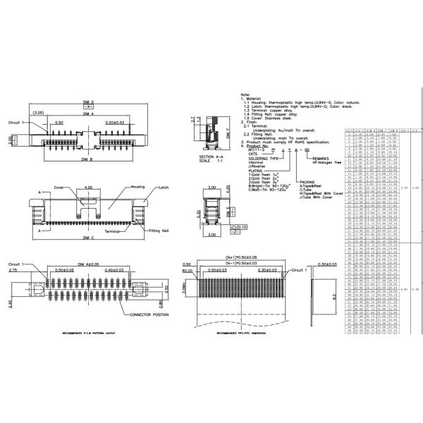 Housing : LCP, White, Flammability Rating(UL94V-0)