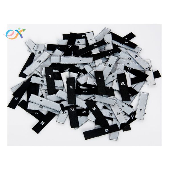 Size Woven Ribbon Tag Clothing Sewing Sew Garment Fabric Embroidered Labels White on Black