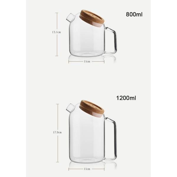 Large Capacity Water Pitcher Glass Teapot with Filter and Button Cork Lid