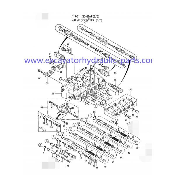 | ZAXIS350LC-3 | CONTROL VALVE 3362 / CONTROL VALVE BODY AND SPOOLS (5-SPOOL SIDE)CORPS ET TIROIRS DE DISTRIBUTEUR (COTE A 5 TIROIRS)CUERPO Y CARRETES DE VALVULA DE CONTROL (LADO DE 5 CARRETES) |