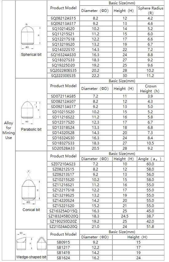 and so on, suitable for hot insert or cold pressing bit inserting process, with some of he materials used