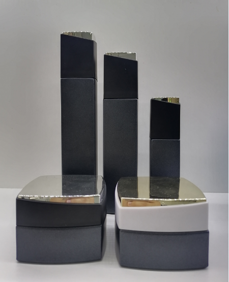 Refillable Empty Cosmetic Glass Packaging Set 120ml 100ml 50ml 50g 30g Lotion Bottles and Cream Jars matt black surface