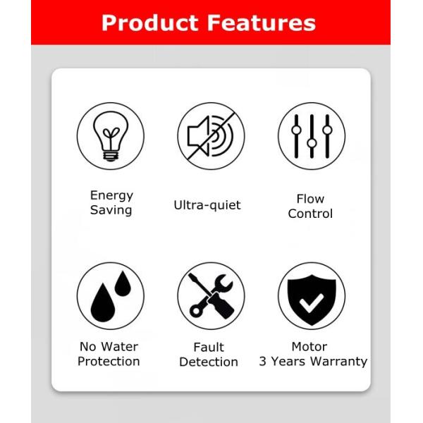 2,The water pump uses the latest three-phase power with brushless and sensorless control technology, which saves up to 60% energy.