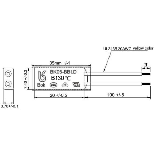 BK05-BB1D bimetal thermal protector uses high sensitive disk-shaped bimetal strip as the temperature-sensing element. It is composed of bimetal strip, moveable contact, stationary contact piece, fixed base, moveable spring piece, case and temperature resistance lead wire.The bimetal strip is fixed on the base, which can maintain the consistency of disconnection and reset temperature after long-term use. Its' main function is overheating, overload protection.