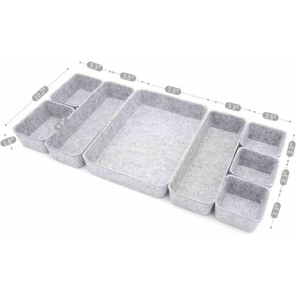 1). Package content: 8 pack of drawer organizer trays , 2 tones colors storage bins, more economic and affordable for home office dorm storage and organization