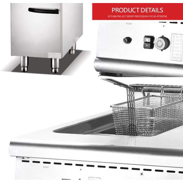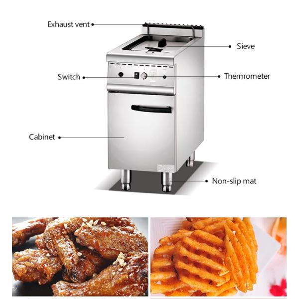 18L Stainless Steel Cooking Equipment Floor Type Single Tank One Basket Gas Fryer With Cabinet
