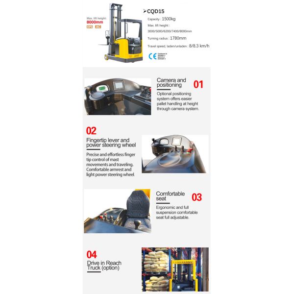 heavy duty forklift stacker 1500kg 1.5 ton full electric reach truck with EPS for sale