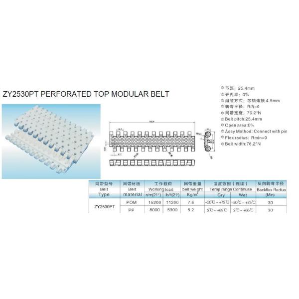 China ZY2530PT PLASTIC PERFORATED CONVEYOR MODULAR BELTS FLAT TOP BELTS WITH OPEN AREA MATERIALS PP POM ACETAL FDA FOOD GRADE factory