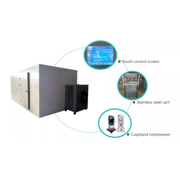 | Model & spec. | Drying quantity per time (kg) | Power of blower fan (kw) | Consumed steam(L/min) | Drying cart (pcs) | Drying pan(pcs) | Machine Size (mm) | Upper and lower temp. difference |