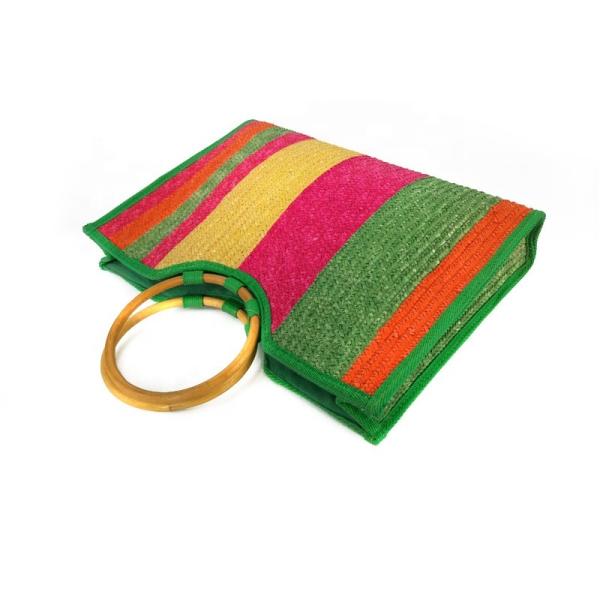 Wholesale Colorful Straw Bag With Round Wood Handle Handmadebeach Bag