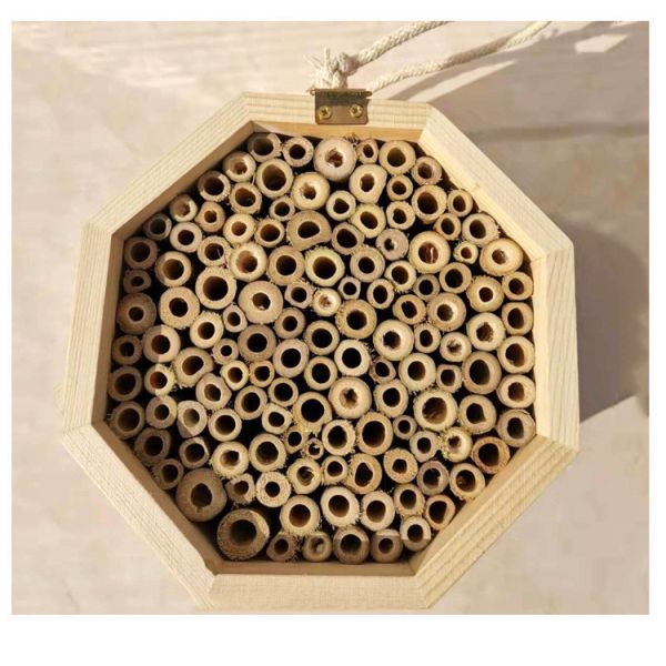 solid pine wood.Mason Bee Hotel - Naturally dry bamboo tubes will