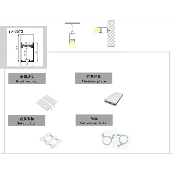 Three Sides Lighting Aluminum LED Profiles Suspended LED Profile For Workshop Place 35*73