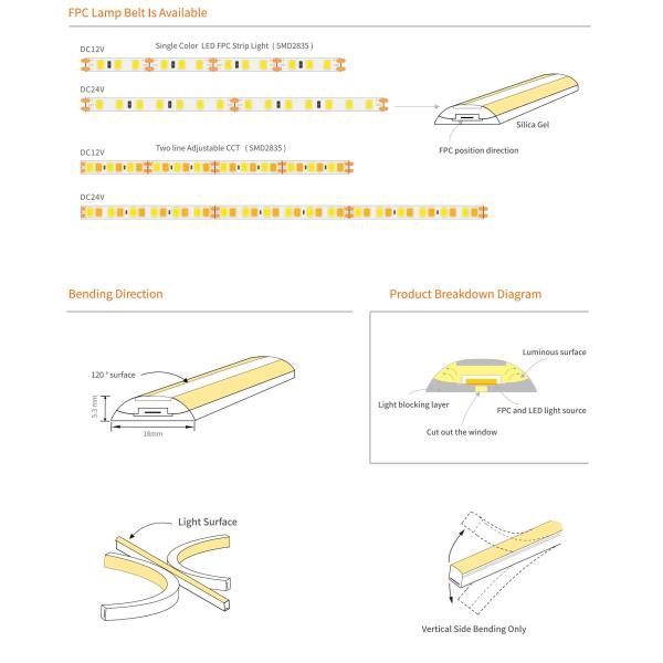 | LED Qty/m | 126leds(single color) 240leds(adjustable CCT) |