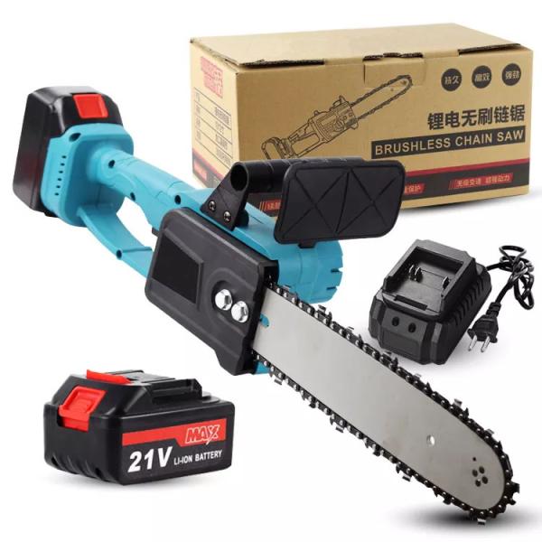 1,Cordless Chain Saw: This lithium battery cordless chain saw uses a high-quality guide chain that has been deeply quenched to ensure smooth cutting. The wooden teeth design can make the chain saw stuck on the branches, cutting more efficiently and faster.