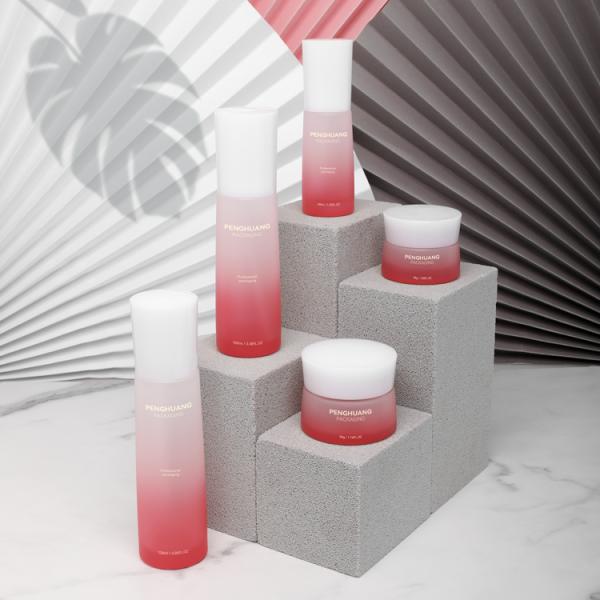 Luxury Skin Care Packaging Set Red Gradient Glass Lotion Bottle Cream Jar Containers