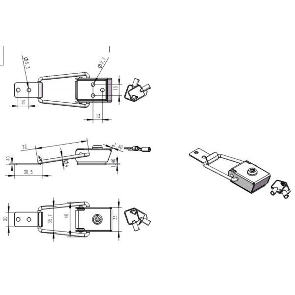 The material of DK027 outdoor light box toggle latch is stainless steel, which can prevent corrosion and has strong durability. At the same time, this buckle is equipped with a safety lock to ensure the safety of the product.