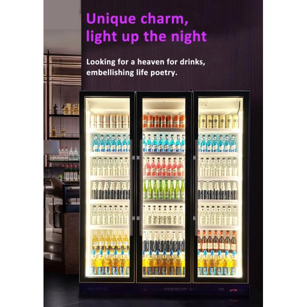 Self Closing Glass Door Black Upright Soft Drink Refrigerator For KTV
