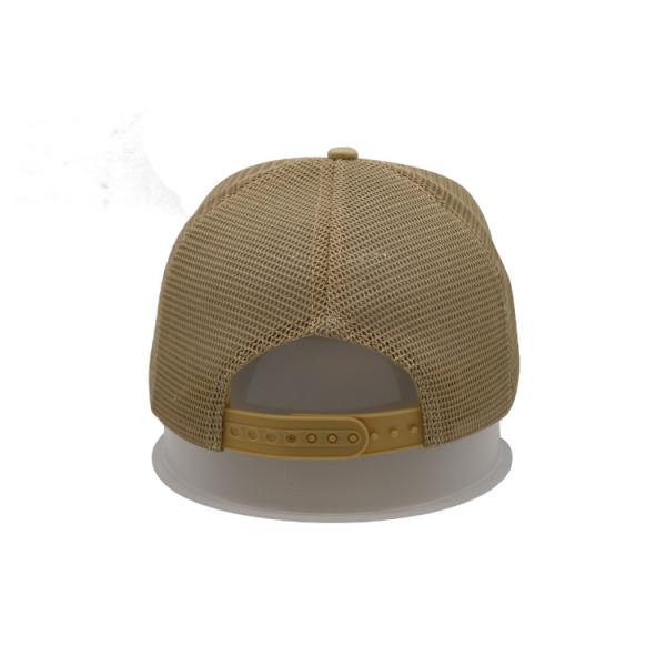 New 5-panel printed patch trucker caps light yellow polyester and mesh hats