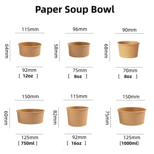 Item Name | Kraft paper soup bowl | Material | 100% Food grade pure kraft paper |
