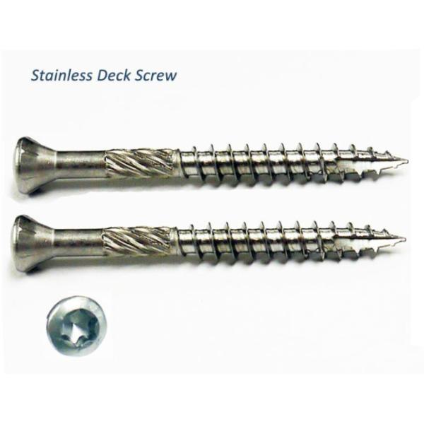Stainless Steel deck screws offer the highest corrosion resistance, better holding power, and no cam-outs or stripping when installing. Unlike square drive fasteners, the star or Torx drive recess holds the insert bit more securely when applying torque.
