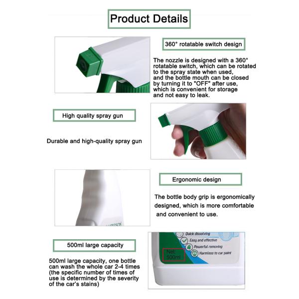 500ml large capacity, one bottle can wash the whole car 2-4 times(the specific number of times of use is determined by the severity of the car’s stains)
