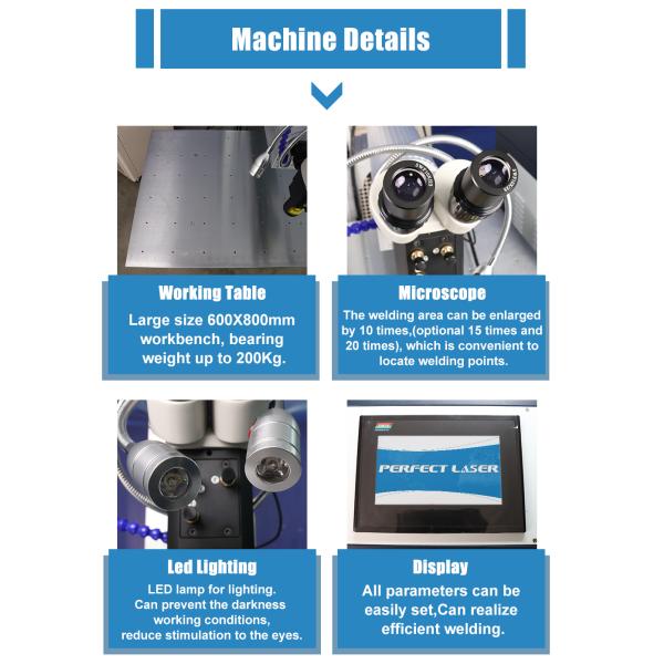 1. The laser welding equipment X / Y / Z 3-axis adopts electric working table, controlled by 4 motors, it can move left and right, front and back, up and down by handle operation, easy focusing, more convenient and efficient use.