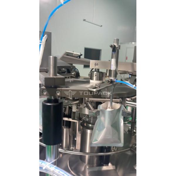 Through the robot to the customer's design and molding of the bag to pick up the bag, open the bag, filling and then finally packaging and sealing, to achieve fully automated packaging.