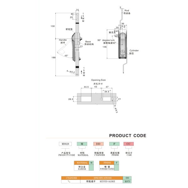 | Product Name: | MEIGU MS828 Lock Pocked Black powder coated Zinc Rod control Latch cabinet door plane lock |