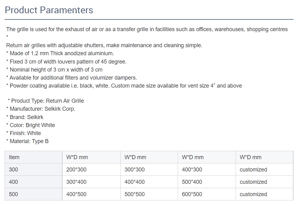| series: | Demolition Double Shelves Grille , Residual Pressure Gate , Square Diffuser , Louver with Brake , Double Shelves Adjustable Louvers, Return Air Grille, Rain Proof Louvers, Grille Louvers ,Door Hinge Return Air Grille ,Double Layer Adjustable Louvers. |