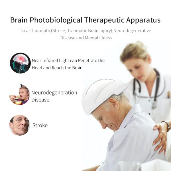 The Brain Photobiomodulation Machine is a therapeutic instrument based on the principle of photobiomodulation. It has a good therapeutic effect on traumatic events (stroke, traumatic brain injury, and global ischemia), degenerative diseases (dementia, Alzheimer's and Parkinson's), and psychiatric disorders (depression, anxiety, post traumatic stress disorder)