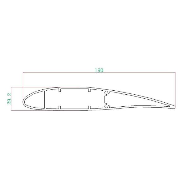 This product is a customized 6063 aluminum extrusion profile with anodized surface finish, which is primarily used for the manufacture of fan blades. 6063 aluminum alloy has excellent thermal conductivity and can withstand high temperatures, making it ideal for applications in fan blades.