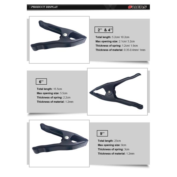 | 2 4 6 9 Inch Heavy Duty Spring Clamps For Wood Working, DIY, Photo Studio Backdrops | |