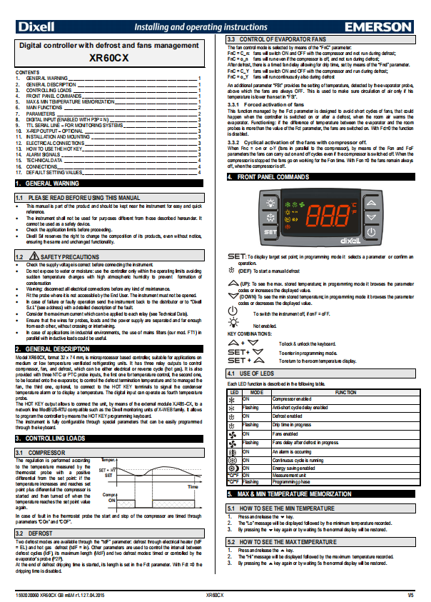 medium or low temperature ventilated refrigerating units. It has three relay outputs to control