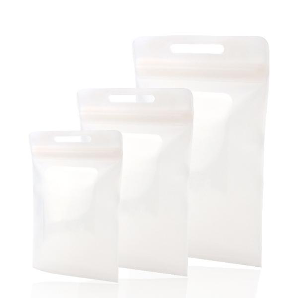 [ SILICONE BAGS REUSABLE STORAGE ] Reusable large freezer bags with a transparent + three scale design in the middle , which makes it easy to know the amount of food quickly . Simple white makes your refrigerator tidier !