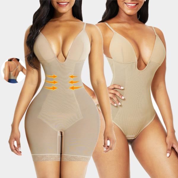 Feature | Features: *1. Plunge front and low-back designs make the bodysuit coordinate well with wedding dresses, evening dresses and other low-cut, backless garments. *2. Adopt 210gsm mesh fabric for stretching and longevity, breathable and no sultriness. *3. Double-layer mesh on the abdomen for a moderate hug, strengthening the tummy control. *4. Adjustable and removable shoulder straps, two ways to wear: Traditional and Criss-cross. *5. Thong with detachable hook&eye closure for convenience when nature calls. *6. Padded top provides coverage and modesty, you can wear it bra-free. | ||||||