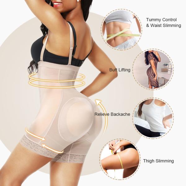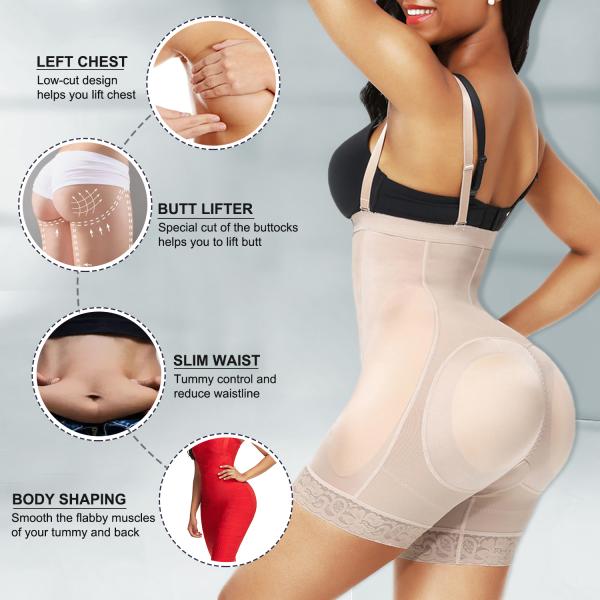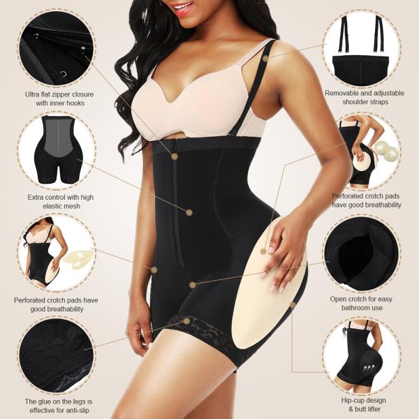 Feature | *1. 70% NYLON+30% SPANDEX *2. Zip+hook-and-eye closures on the front are easy to wear *3. Open crotch for ease when nature calls *4. Removable and adjustable spaghetti straps *5. 3-layer fabric o the belly part enhance the tummy control effect, and the ruched, stretching butt area prevents flattening the natural curve, with removable and perforated hip+butt pads enhance the hip shape and body, reduce sultriness | ||||||