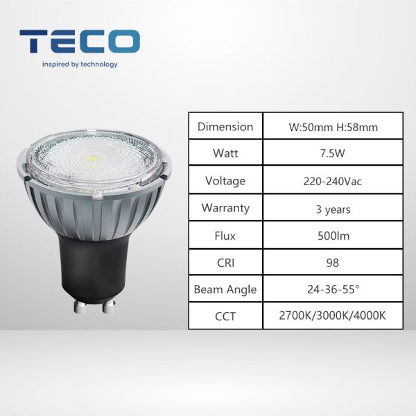 Teco GU10 LED Spotlight 7.5W 2700K 3000K 4000K Zoomable Ra98 Dimmable LED Bulbs