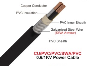 Applications: PVC insulated power armoured electrical cable is suitable for electricity transmission and distribution line whose rated voltage is 0.6/1kV. The flame retardant type is used in place where high density and good fire-proof property are required, such as subway, power station, high-rise building, entertainment place, large industriall and mining enterprises etc.