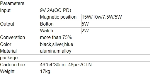 | Magnetic Charger Output: | 5W/7.5W/10W |