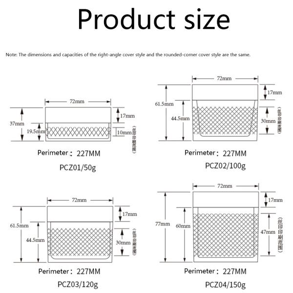 Capacity range: 50g / 100g / 120g / 150g (customizable according to