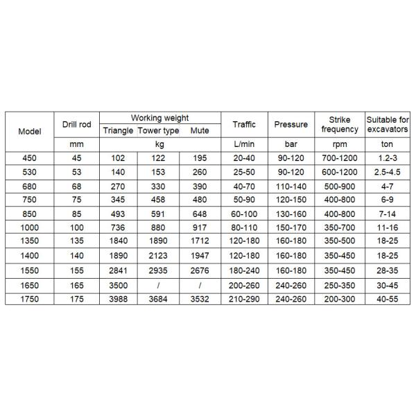 Our comprehensive lineup includes various models tailored to precisely match the hydraulic flow and operating weight of excavators within the specified 1.2-ton to 55-ton range. This ensures optimal power delivery and minimal stress on your machinery. We offer different chisel types including moil points for breaking, wedge chisels for cutting, and blunt tools for demolition, allowing you to select the perfect tool for your specific project needs. The quick and secure mounting design facilitates easy installation and removal, minimizing downtime and enhancing overall job site efficiency.