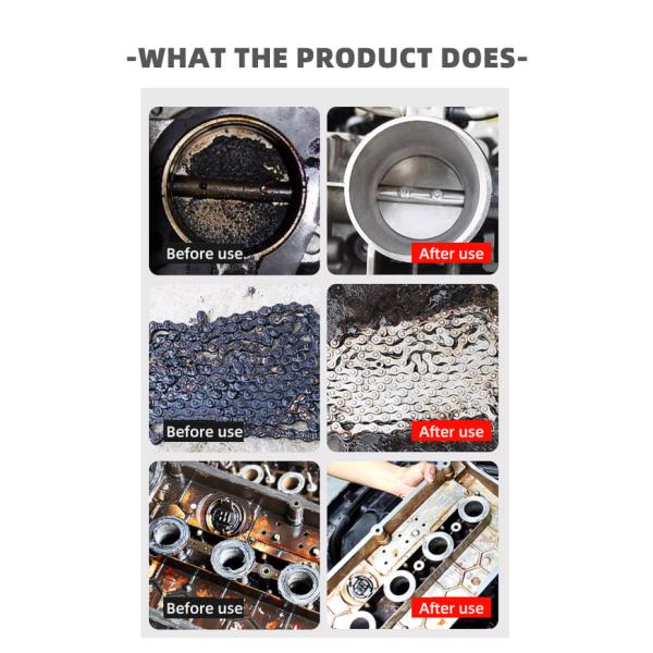 This product can efficiently remove stains such as gum, sludge and carbon deposits on the engine throttle valve and its pipelines, and significantly improve the problems of idle shaking, weak acceleration, increased fuel consumption and high exhaust CO concentration.