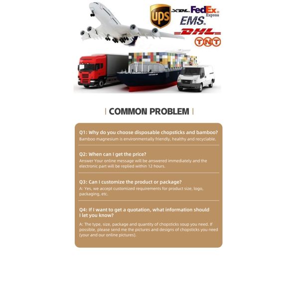 | Outside packing | Packed with standard exporting carton and PE bags. Your personified packing is workable. bamboo chopsticks |